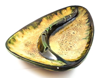 Beauty of a Mid Century Drip Glaze Amber and Brown Triangular Ashtray/Trinket Dish